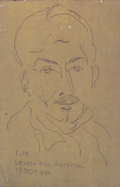 Original Sketch by Lewis Mumford "Face, Lenox Hill Hospital (Sept. 19, 1930)" from the Lewis Mumford Art Collection at Monmouth University.